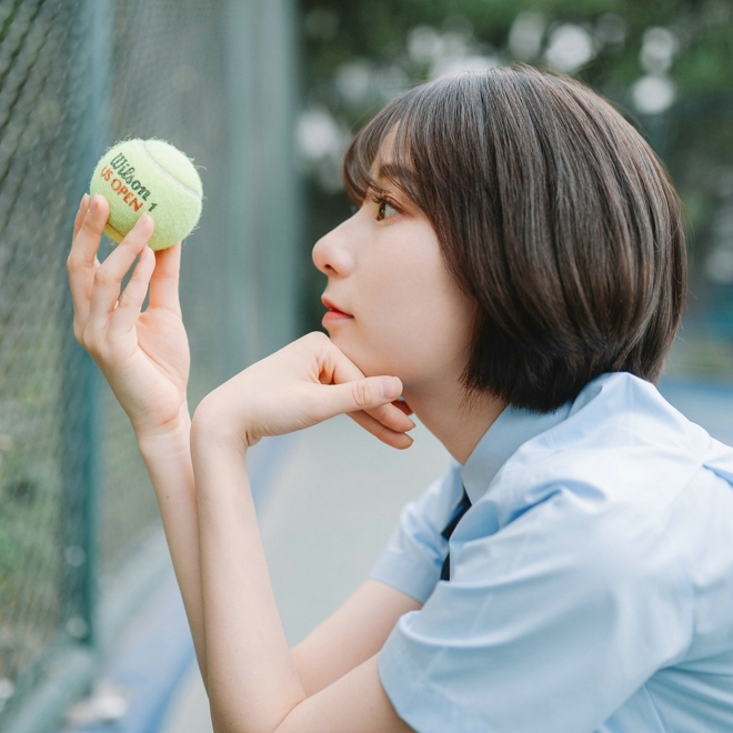 清新阳光皮肤白嫩短发清纯学生妹校园甜美俏皮活力唯美写真